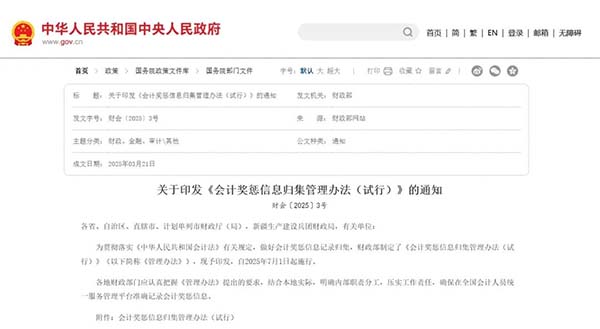 據(jù)石家莊用友軟件了解,日前,財政部正式印發(fā)《會計獎懲信息歸集管理辦法(試行)》,宣布自2025年7月1日起,全國會計人員的表彰獎勵和行政處罰信息將被錄入全國會計人員統(tǒng)一服務(wù)管理平臺。