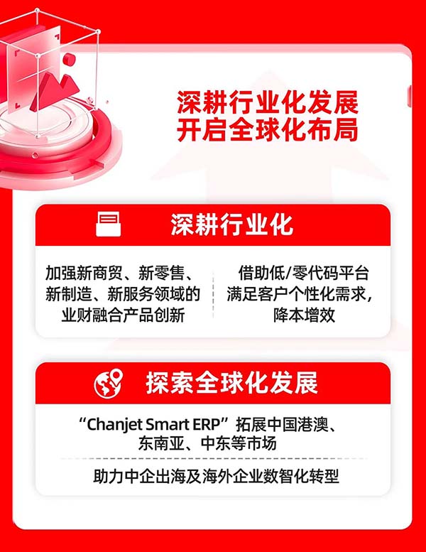 同時,暢捷通積極探索全球化發(fā)展,將“Chanjet Smart ERP”產品拓展至中國港澳地區(qū)、東南亞、中東等市場,助力中企出海及海外本地化企業(yè)的數智化轉型升級。