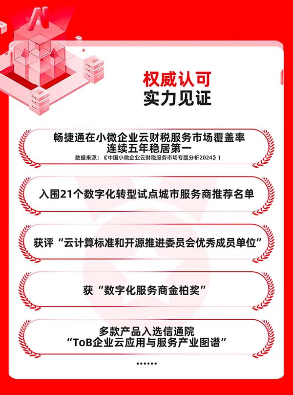 根據易觀發(fā)布的《中國小微企業(yè)云財稅服務市場專題分析2024》,暢捷通在小微企業(yè)云財稅服務市場覆蓋率連續(xù)五年穩(wěn)居第一,在用戶滿意度、產品性能及廠商綜合實力等核心維度的調研評測中均名列第一。公司還榮獲“云計算標準和開源推進委員會優(yōu)秀成員單位”稱號。此外,暢捷通入選了多項企業(yè)財稅服務創(chuàng)新排行榜,多款產品入選中國信通院“ToB企業(yè)云應用與服務產業(yè)圖譜”。