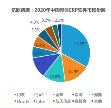 據(jù)Gartner研究顯示,用友是全球企業(yè)級(jí)應(yīng)用軟件(ERP)TOP10中唯一的亞太廠商,在全球ERP SaaS市場(chǎng)亞太區(qū)廠商排名第一,也是唯一入選Gartner全球云ERP市場(chǎng)指南的廠商。在億歐智庫(kù)公布的數(shù)據(jù)可以看出,用友公司在國(guó)產(chǎn)廠商中,無(wú)論是整體ERP軟件市場(chǎng)占有率還是高端ERP軟件市場(chǎng)占有率,均穩(wěn)居第一位。
