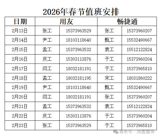 如您在節(jié)假期間有急需處理的用友軟件問題,您可撥打值班電話為您提供電話服務。