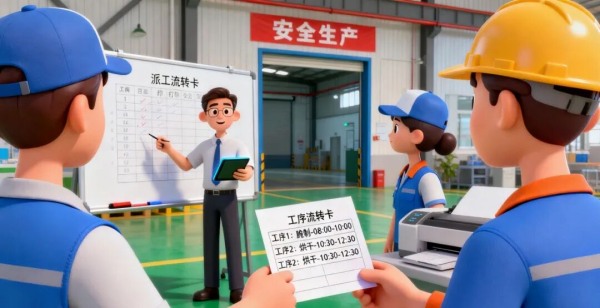 車間根據(jù)生產(chǎn)加工單派工后,下發(fā)工序流轉(zhuǎn)卡。