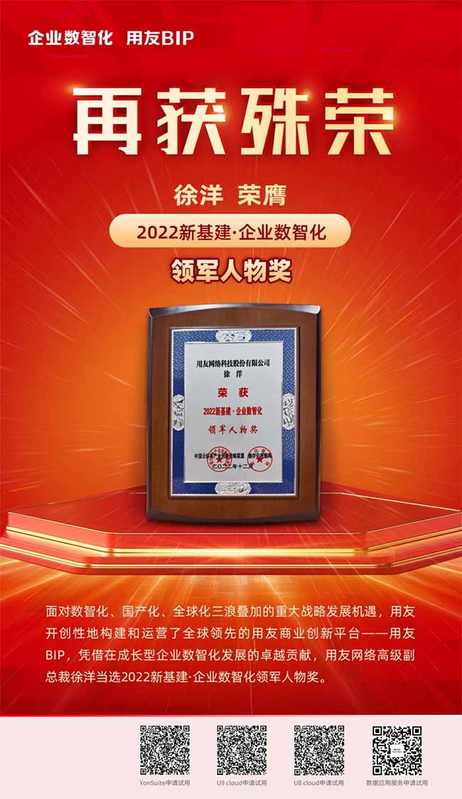 今年1月,國務院印發(fā)的《“十四五”數(shù)字經(jīng)濟發(fā)展規(guī)劃》明確提出,到2025年,數(shù)字經(jīng)濟核心產(chǎn)業(yè)增加值占國內(nèi)生產(chǎn)總值比重達到10%;展望2035年,力爭形成統(tǒng)一公平、競爭有序、成熟完備的數(shù)字經(jīng)濟現(xiàn)代市場體系,數(shù)字經(jīng)濟發(fā)展水平位居世界前列。依托國家政策紅利,面對數(shù)智化、國產(chǎn)化、全球化三浪疊加的重大戰(zhàn)略發(fā)展機遇,用友開創(chuàng)性地構(gòu)建和運營了全球領先的用友商業(yè)創(chuàng)新平臺——用友BIP,憑借在成長型企業(yè)數(shù)智化發(fā)展的卓越貢獻,用友網(wǎng)絡高級副總裁徐洋當選2022新基建·企業(yè)數(shù)智化領軍人物獎。